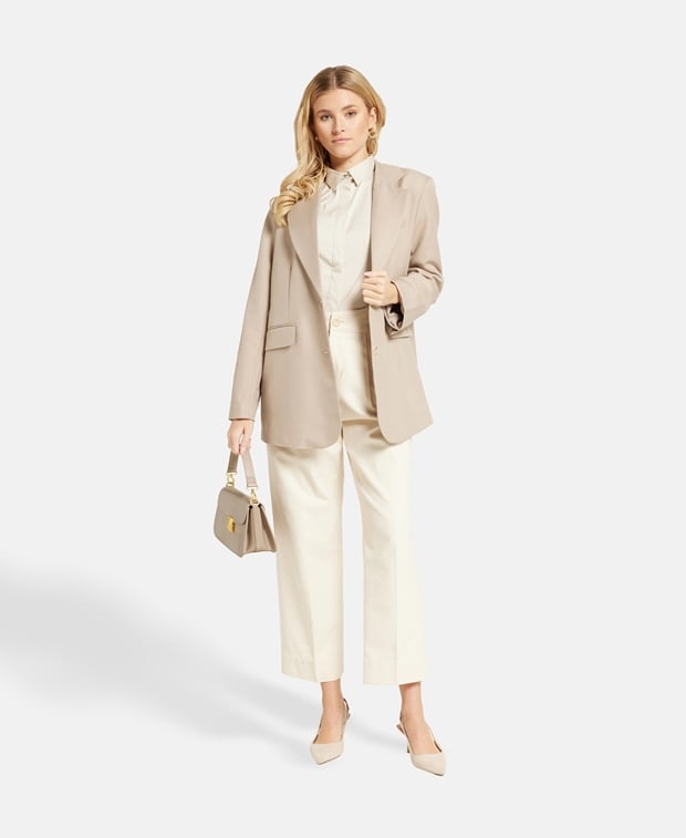 - Verschluss: durchgehende Knopfleiste