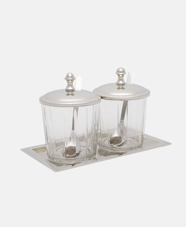 - Set aus: 2 storage jars, 2 spoons and 1 tray