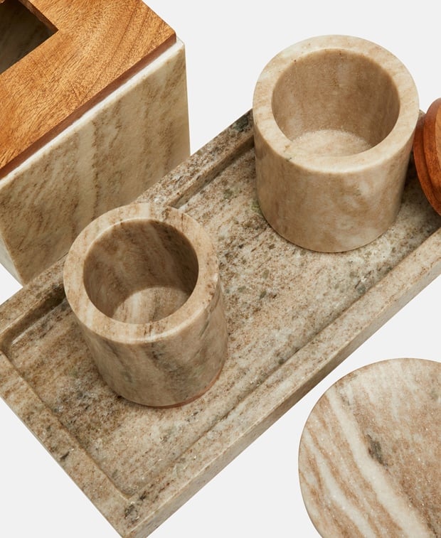 - Material: Mangoholz, Marmor